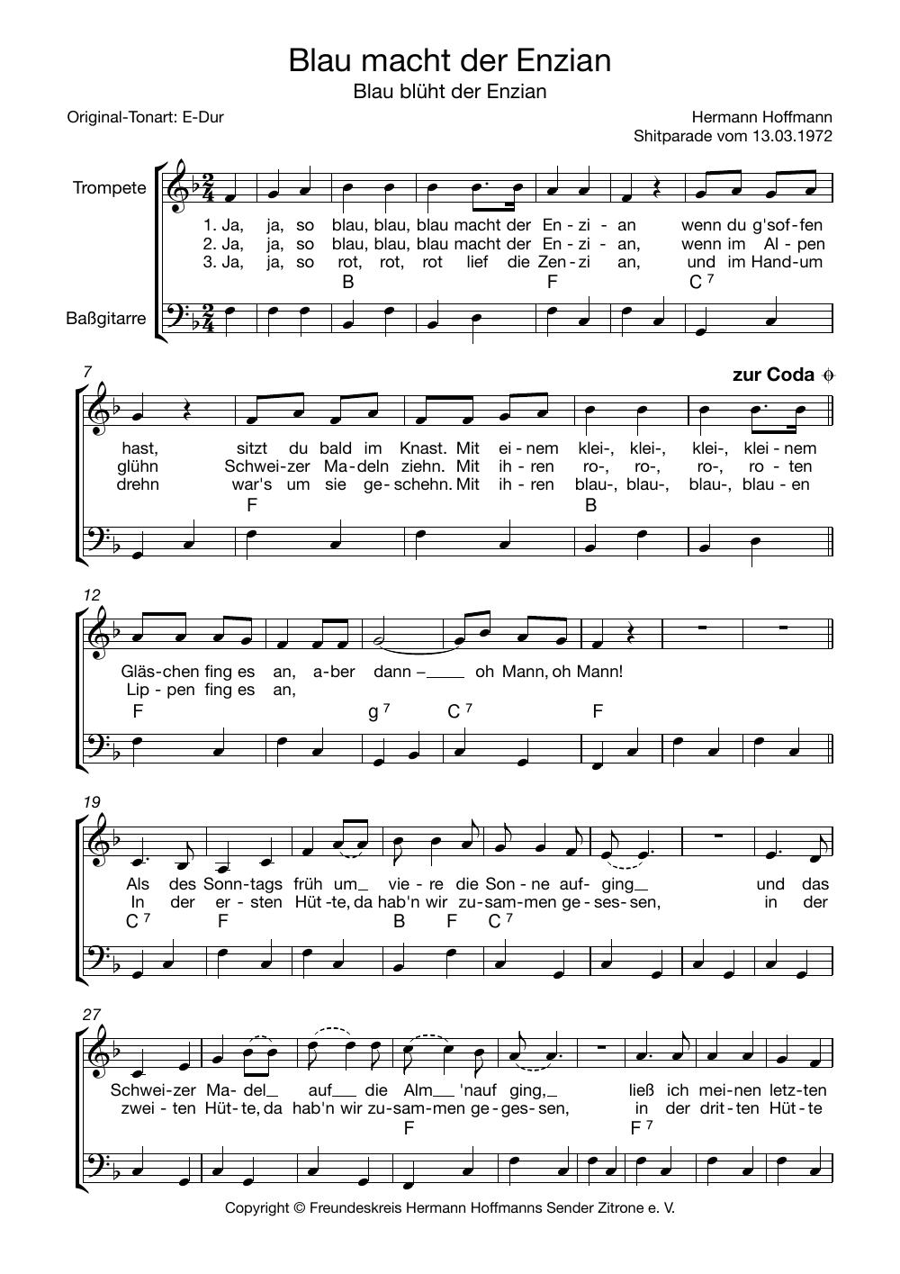 Diese Parodie ist vor der Shitparade entstanden und am 13. März 1972 gesendet worden. Der Enzian blüht nicht nur blau, das gleichnamige alkoholische Produkt kann auch entsprechende Folgen haben.