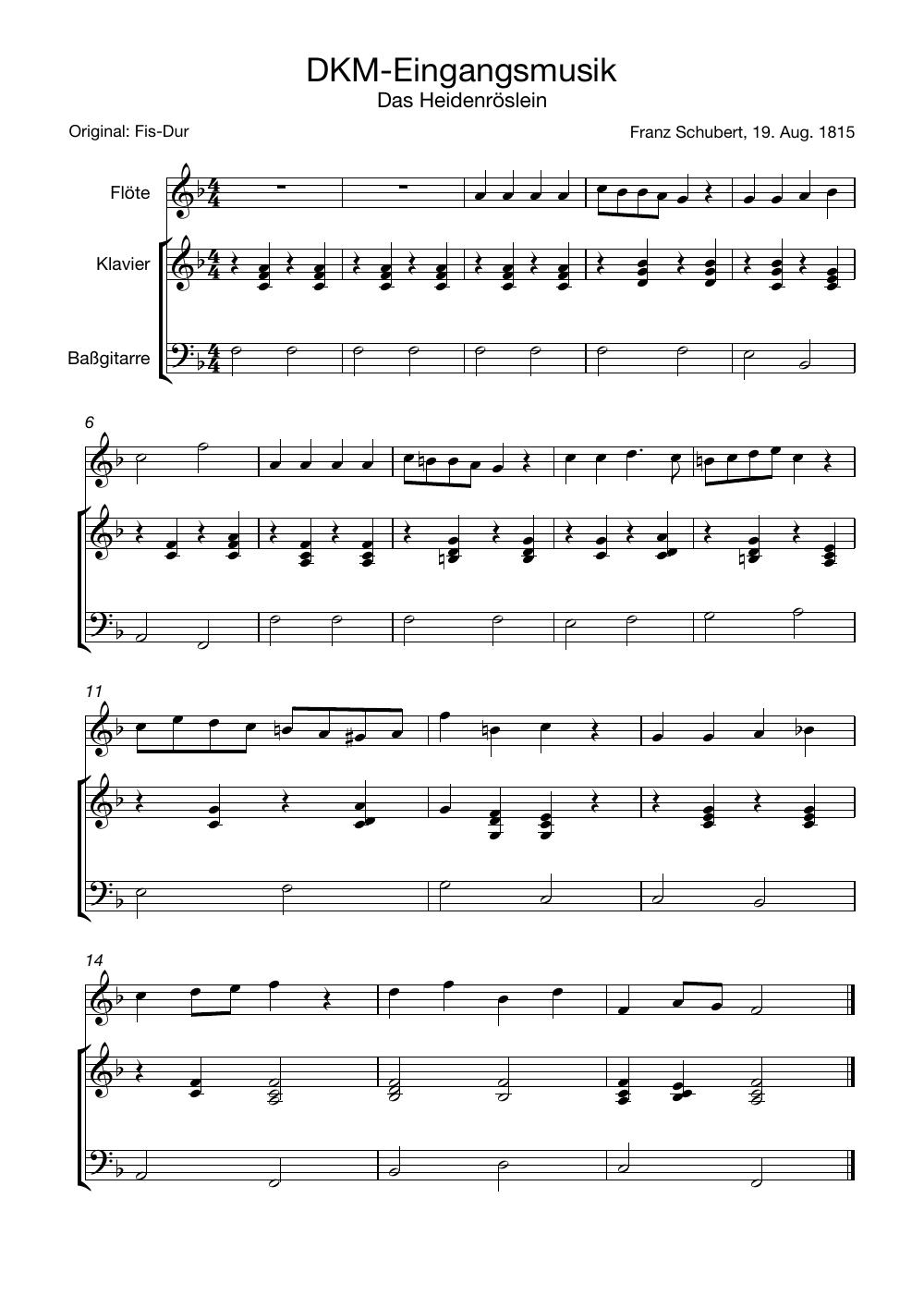 Die langjährige Eingangsmusik der Kleinen Dachkammermusik entspricht der ursprünglichen Vertonung des Goethe-Gedichtes "Das Heidenröslein" von Franz Schubert (1815). Die spätere und bekanntere Version von Heinrich Werner (1829) weicht in der Melodie davon ab.