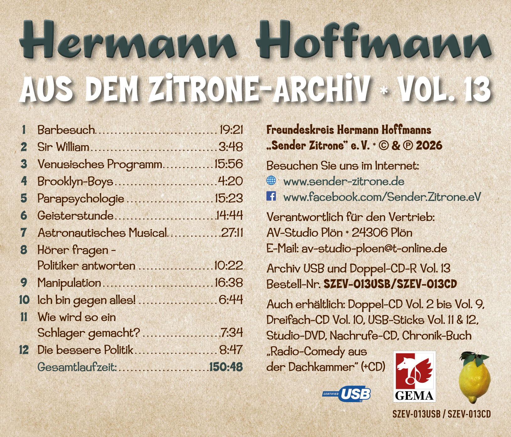 Label: Freundeskreis Hermann Hoffmanns „Sender Zitrone” e. V., SZEV-013USB/SZEV-013CD