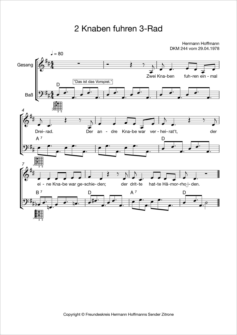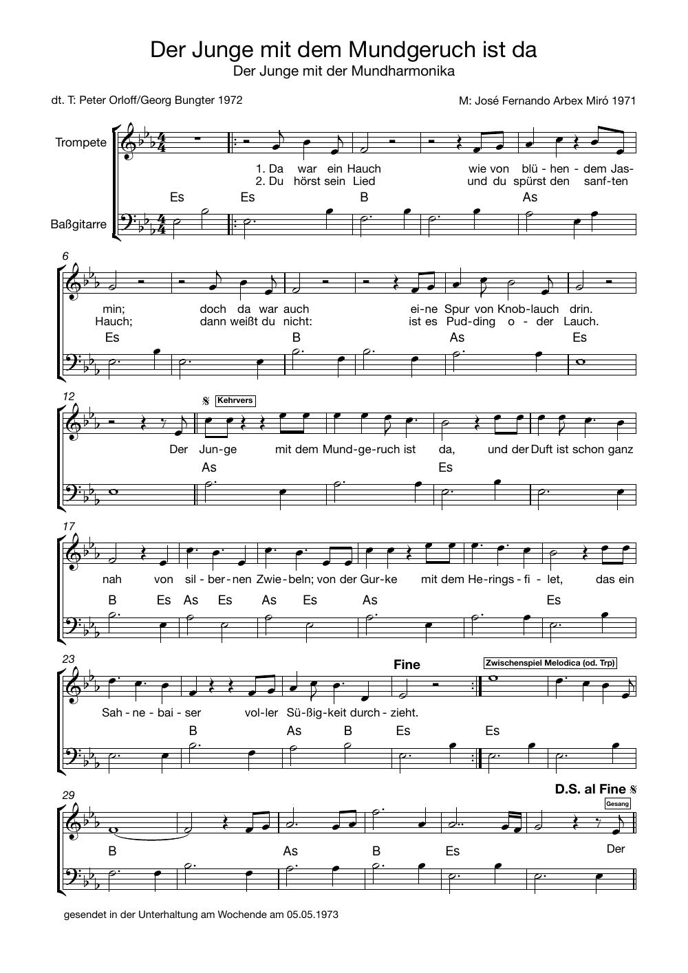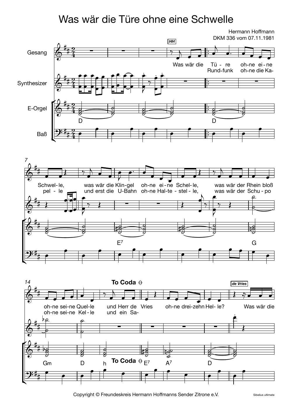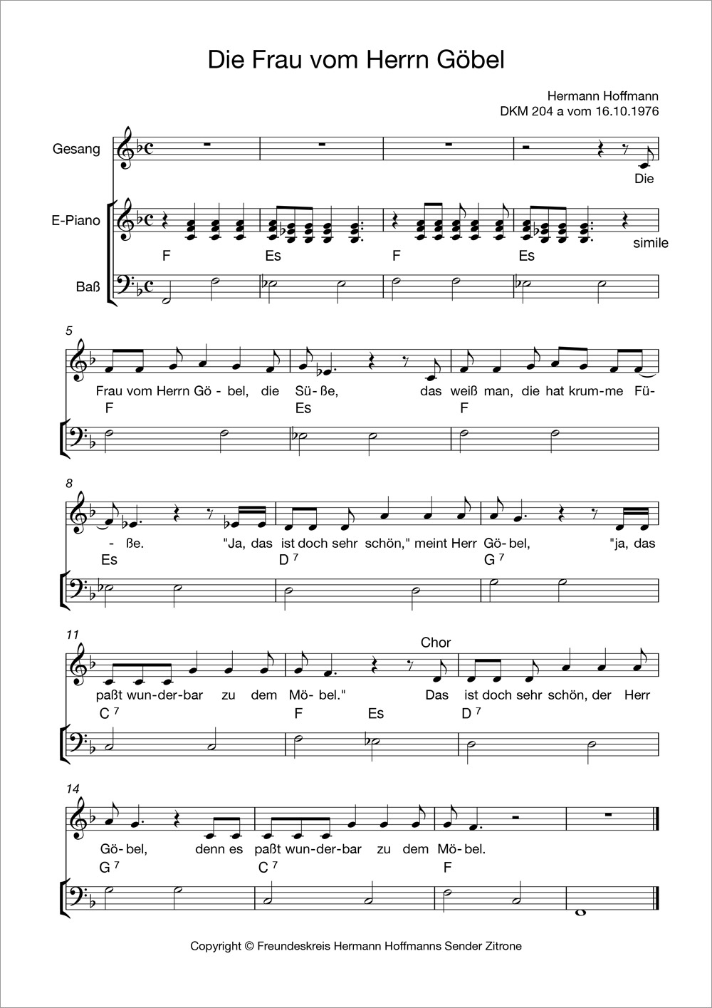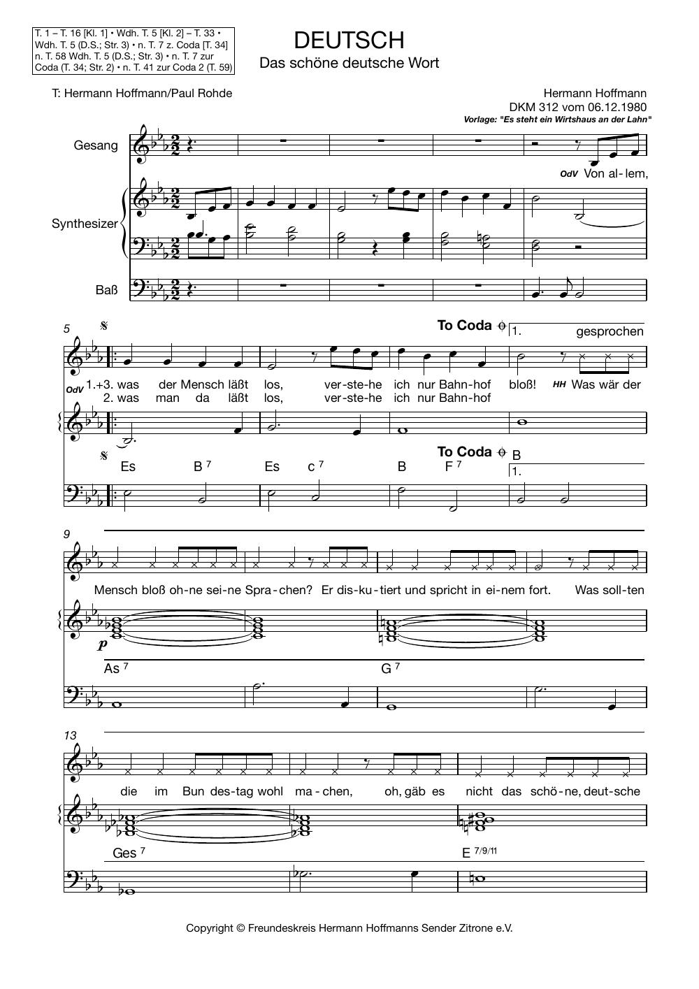 Hermann Hoffmann hat Hunderte von Songs geschrieben, die alle in seinen Sendungen vorgestellt wurden und auch den Weg auf LPs und CDs gefunden haben. Sie können diese nun aber nicht nur anhören – wenn Sie selber singen, könnten folgende Noten Ihr Interesse finden. Unser Freundeskreis-Mitglied James Schäfer setzt in unregelmäßiger Folge beliebte Dachkammer- oder andere Songs in Notenform um. Wir wünschen viel Spaß beim Selbersingen!