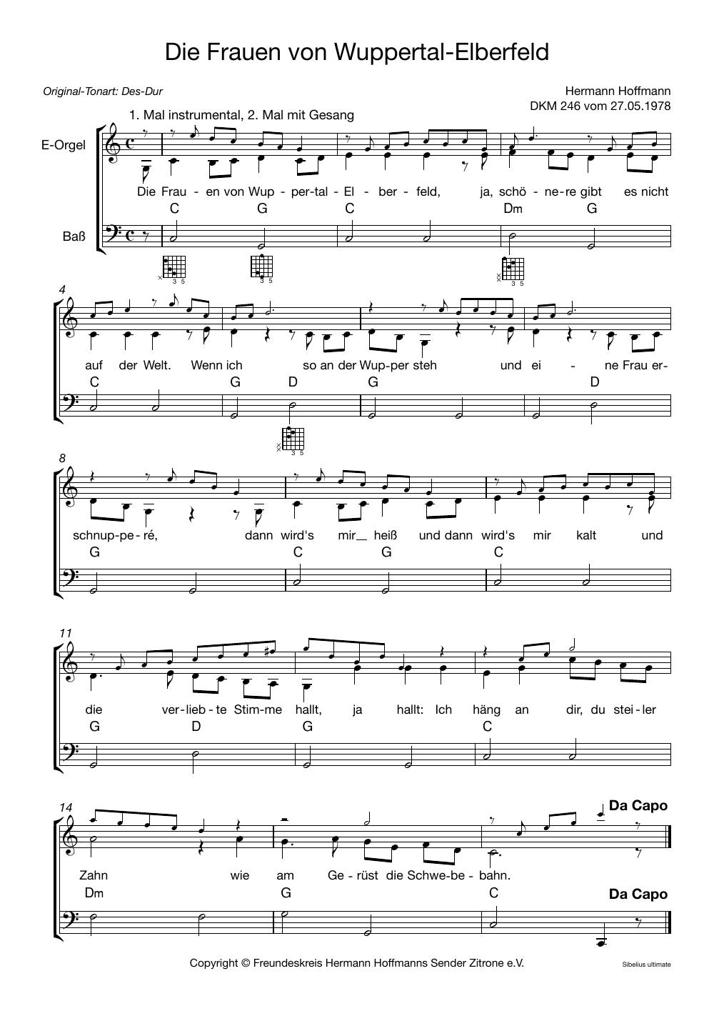 Als Einstieg in die Folge 246 der „Dachkammermusik” vom 27.05.1978 besingt Hermann Hoffmann die Schönheit der Frauen aus Wuppertal-Elberfeld.