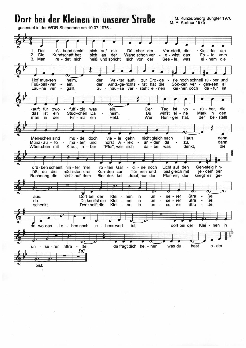 Nach Peter Alexander gibt es in jeder Siedlung eine kleine Kneipe, aber Georg Bungter und Hermann Hoffmann weisen noch auf eine andere Institution hin. Dies ist die Parodie auf „Die kleine Kneipe” von Peter Alexander, gesendet am 10.07.1976 in der „Deutschen Shitparade”.