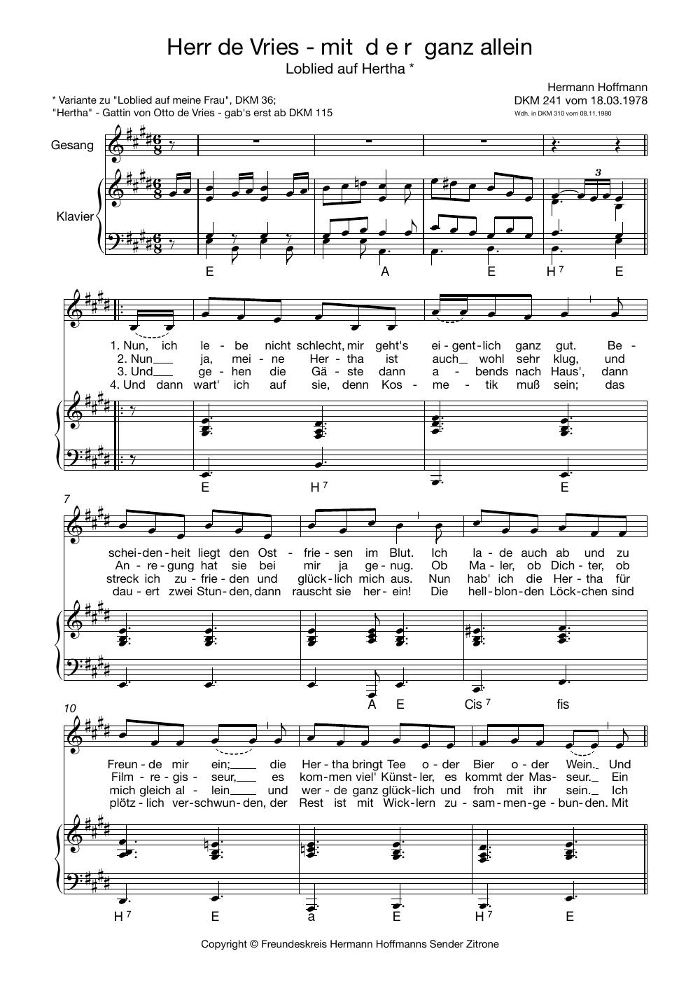 Am 18.03.1978 singt Herr de Vries live in Herne ein Loblied auf seine Hertha, in der Folge 241 der „Dachkammermusik”.